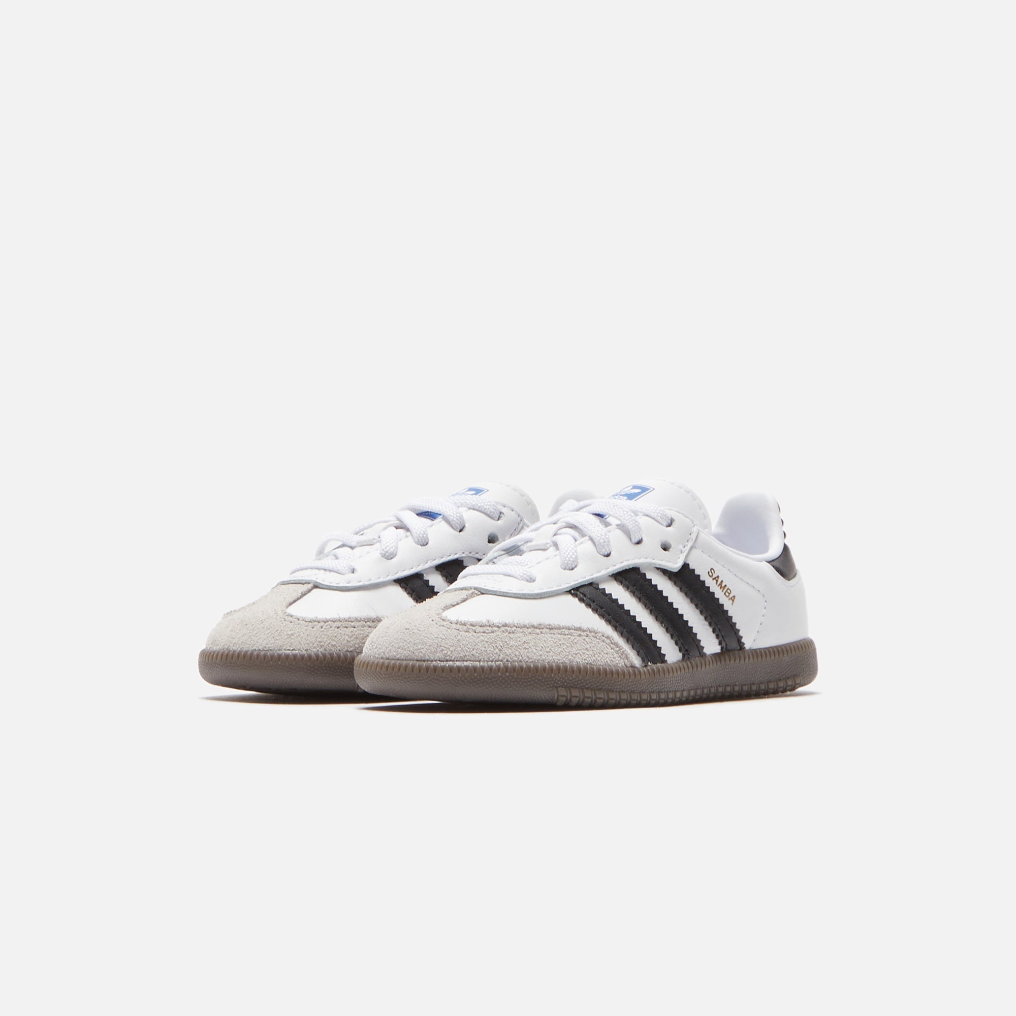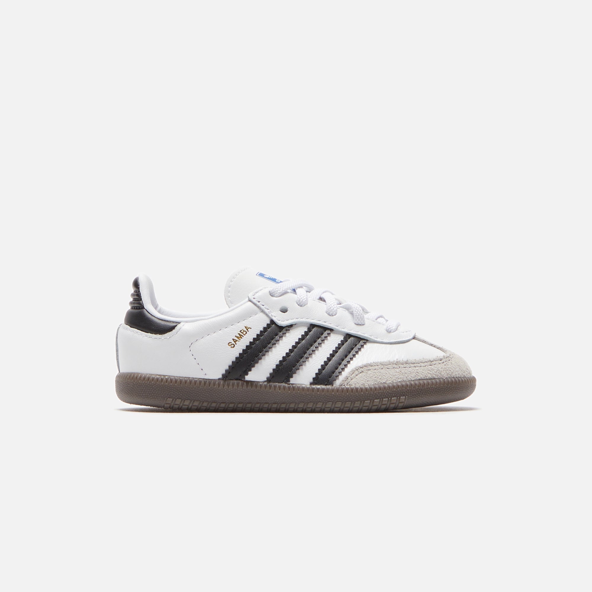 Toddler Samba OG silhouette Leather upper Suede T toe Padded collar adidas Trefoil logo patch on tongue Samba branding on side...