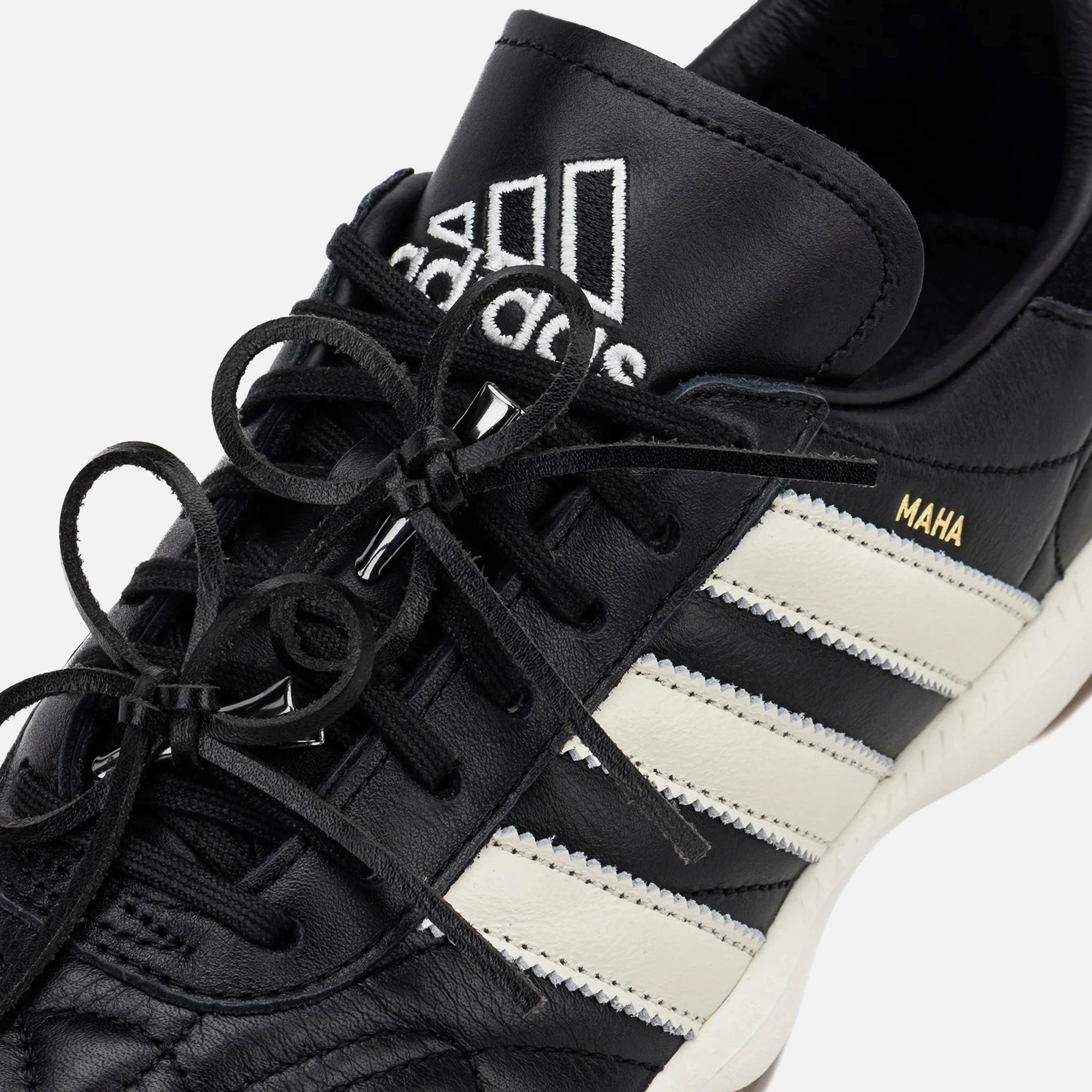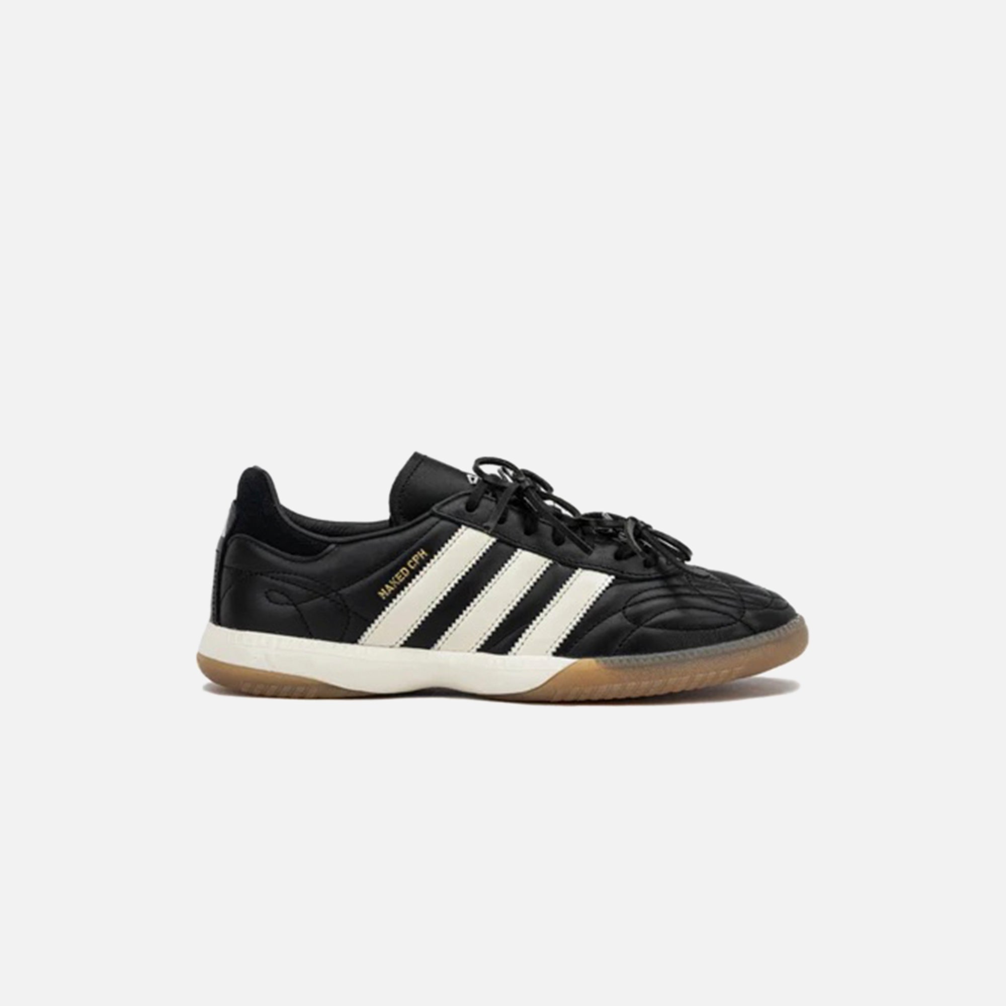 Naked x Maha Samba MN silhouette Leather upper Padded collar Boot-style embroidery Topstitch detailing Embroidered adidas logo on tongue Tri-stripe...